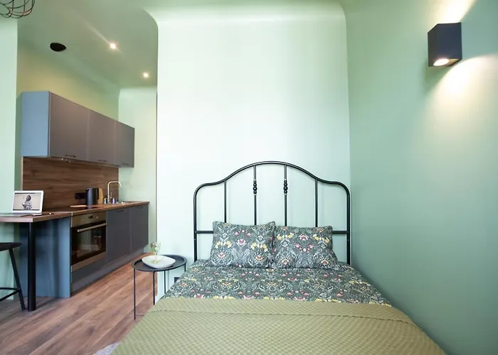 توفّر Green Oasis In Central Location Near The Old Town إطلالات على المدينة، وتقع في غضون حوالي 25 دقائق مشياً على الأقدام من Musee Art Nouveau.